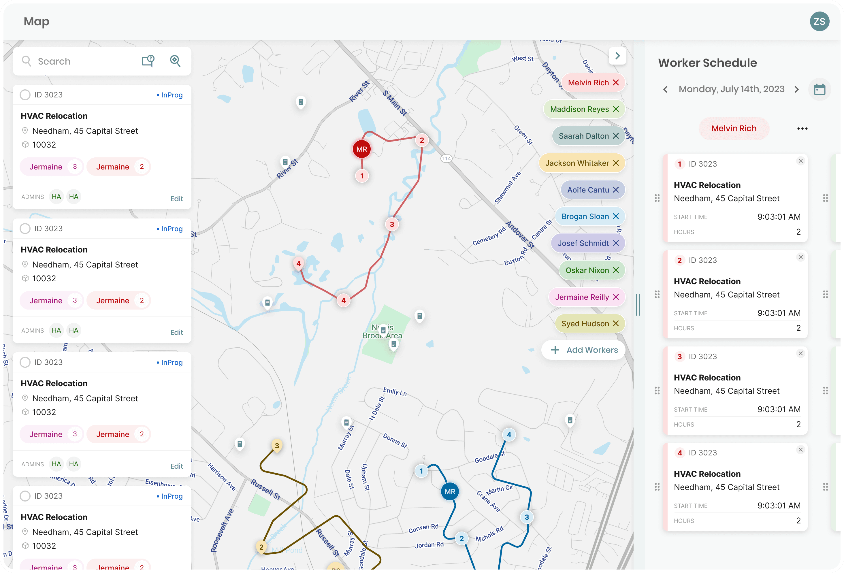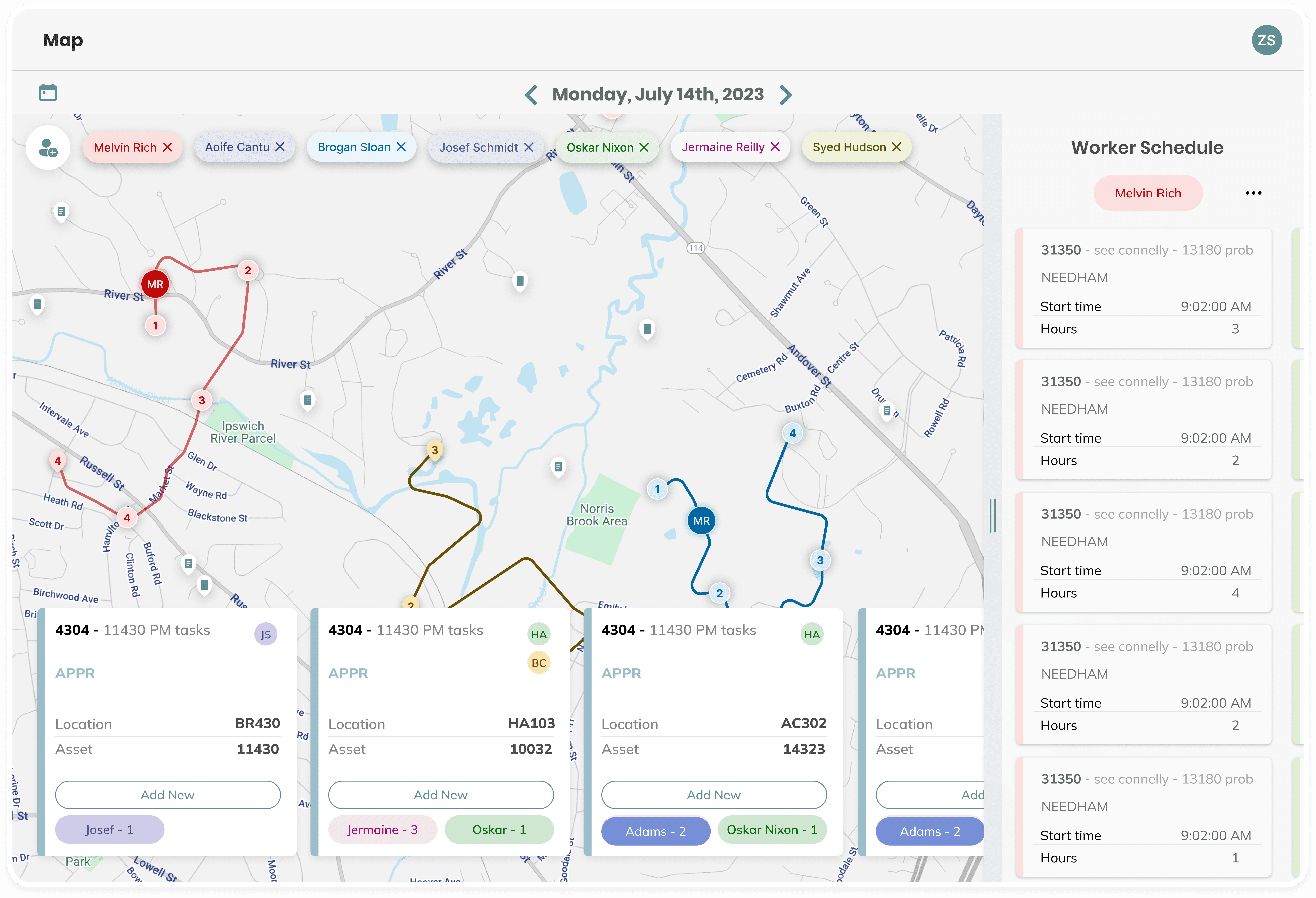 Simplified map-based dispatch workflows by improving spatial planning and job assignment interactions, enabling faster coordination across high-volume field operations.