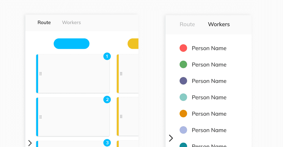 As the dataset grew, the horizontal layout forced users to constantly scan and scroll in multiple directions. The map, worker chips, and schedules began colliding after just a few cards, increasing cognitive load and slowing comprehension.